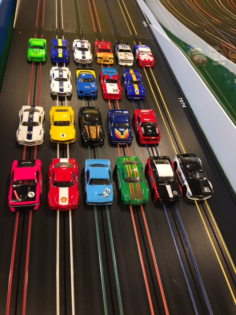 April 12, 2016 | john A Fast Day at Fast Five Raceway – Four Races / Four Winners Southampton, MA April 9, 2016 We had 21 racers at Ryan Archambault’s Fast Five Everyone concentrating hard... Raceway including Pete and Peter Medeiros making their first appearance of the season, Matt Patrick and Dave Bryden from the local T-Jet club, The East Coast Outlaws and Phil Hilgert who’s tuning up for the 2016 Nats to be held at Peter Lentros’ LenJet Raceway in June. Also making the trip north was Jerome Burwell from the Tri-State HO Racing Club in NJ. I guess the word is out, if you like fast tracks, you have to race on Ryan’s Snake Bite track – one of the fastest tracks in New England, even G-Jets were flying around the track and Super Stocks are simply breath taking (and finger blistering – JR). Two questions were in the air entering the race, would anybody be able to stop John Pileggi’s dominance in the Pro SS / CMPM division in which he has 6 straight victories; and would anyone be able to stop Donny Hall’s dominance in the Amateur G-Jet / Spec Racer division where he has a four race win streak going. You’ll have to keep reading to find out… TransAm Bodies G-Jets A full field of TransAm cars First up were TransAm bodied G-Jets. At 13.5 volts, the cars were flying around the track, somebody must have forget to tell the racers that these cars had no traction magnets. While all the action (and crashing – JR) was going on, Ryan sat by his workbench helping folks and talking but always with one eye on the computer screen; the *hit eating grin was obvious – he knew that no one was getting near the times he was able to turn the previous night – he could afford to wait until practice was almost over before running his car. And when he finally did it became obvious he was the man to beat… Amateur Division We had a nice healthy nine drivers for the amateur race, a far cry from earlier in the season Amateur Podium - Matt Patrick 4th, Phil Hilgert 3rd, Peter Medeiros Jr 2nd, Donny Hall 1st when we only had 2 – 3 drivers. The question was who’d beat Donny; Peter Medeiros came the closest but fell 3 laps short, not bad for somebody that hasn’t raced for 10 months. Phil Hilgert put up real good numbers in Red and Green but he too ultimately fell short finishing third. Matt Patrick, making his first ever MARC appearance did surprisingly well putting together a real nice race to finish fourth but he too ran out of gas leaving Donny alone in first for his fifth straight victory in this division. Donny has really pulled together a nice G-Jet / Spec Racer program, looks like he might be racing with the Pros next season. Finishing out the race was Tom Smith in 5th, O’Jimmy Colligan in 6th, Bob Withers in 7th, Dave Bryden in 8th and Pete Medeiros in 9th. Pro Division Pro Podium - John Pileggi 4th, John Stezelecki 3rd, John Reimels 2nd Ryan Archambault 1st For the more observant readers, that's Jerome Burwell standing in for Mr Stezelecki... Ryan’s confidence during practice was well deserved, he simply dominated the race putting up high lap totals in every lane but blue (Ryan – what happened in Blue? – JR). The three Johns were left battling for 2nd with Reimels winning that contest, a whopping 13 laps behind Ryan followed by Stezelecki in third and Pileggi in fourth. Next up was a battle of the Peters and Pauls for 5th. Peter Medeiros Jr made the best of the amateur move-up beating Paul Ryer by one lap with Peter Lentros 2 laps further behind finishing in 7th. Had Peter Medeiros ran the same lap total in the Amateur division, he would have beaten Donny by nine laps; I guess Peter just needed a race to get the rust off his trigger finger – hopefully he’s back for the rest of the season. Finishing out the top 10 were Mike Resnick, Tom Gray and Erik Eckhardt. Super Stocks Practice underway for SS on the Snake Bite With the G-Jets tucked safely back in their pit boxes, it was time for the fast stuff; and boy, super stocks on this track are fast. With the proper set-up, it’s a few quick blips and then drive the key-hole – wicked awesome. Ryan appeared to have the field covered in practice but John Pileggi was bound and determined to keep his 6 race win streak alive. By the end of practice, John found something (or was he sand-bagging it the whole time – JR); it was going to be a barn-burner, or so we thought… Amateur Division Amateur Podium - Phil Hilgert 1st, Donny Hall 2nd, O'Jimmy Colligan 4th, Peter Medeiros Jr 3rd With Tom Smith’s and Dave Bryden’s departure, the amateur field was down to 7 racers, still a very good showing for this division. As soon as the green flag dropped it was apparent that Phil had the set-up nailed; while O-Jimmy, Donny and Peter Jr were fast, no one could match Phil Hilgert’s pace. To put it simply, he was gone amassing a whopping 53 lap victory over second place finisher Donny Hall. Peter Jr and O’Jimmy pushed Donny hard but just came up short in third and fourth respectively. Rounding out the field were Bob Withers who came back strong after a pretty miserable first heat in red, Pete Medeiros who ran a very consistent race across all the lanes and Matt Patrick who had an equipment failure in orange killing all hopes of a better finishing position. Matt was racing his first magnet car Super Stock race in many a year, the smile on his face indicating it won’t be his last! Pro Division Pro Podium - Phil Hilgert 4th, Ryan Archambault 3rd, John Reimels 2nd, John Pileggi 1st Whatever John Pileggi found at the end of practice, it worked (maybe we should shorten practice to 30 minutes… -JR). Ryan and John Reimels put up a valiant effort but were woefully short of seriously challenging Dr P; Ryan had a car problem and John lost a pick up shoe but even without these problems, Dr P had the field covered. John Reimels recovered to finish 2nd followed by Ryan Archambault in 3rd. Phil Hilgert was off the pace he set in the Amateur r